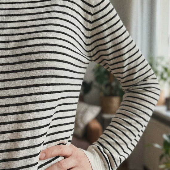 Ten ponadczasowy sweter to esencja swobodnego stylu, która doskonale uzupełni każdą codzienną garderobę. Wykonany z miękkiej i elastycznej dzianiny, zapewnia wyjątkowy komfort noszenia oraz swobodę ruchów przez cały dzień. Regularny wzór w cienkie, poziome paski nadaje mu klasycznego charakteru, który nigdy nie wychodzi z mody. Sweter posiada prosty fason z klasycznym, okrągłym dekoltem, co czyni go niezwykle uniwersalną bazą do wielu stylizacji. Dzięki zastosowaniu rozciągliwego splotu, model ten występuje w jednym, uniwersalnym rozmiarze, idealnie dopasowującym się do sylwetki. To idealny wybór zarówno do zestawienia z ulubionymi jeansami, jak i pod elegancką marynarkę w chłodniejsze dni.