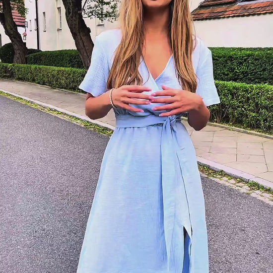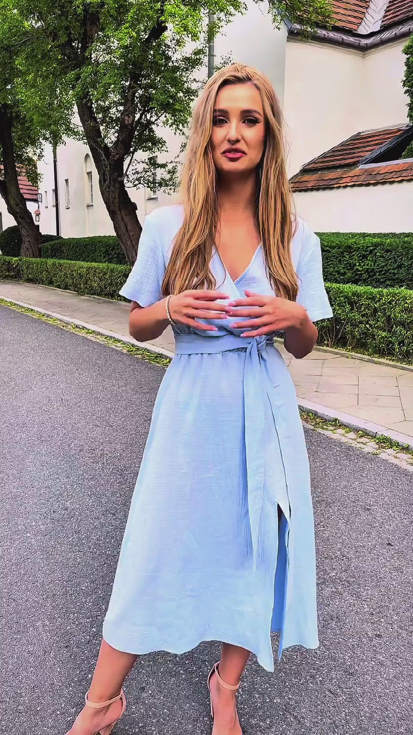 Błękitna bawełniana muślinowa sukienka midi