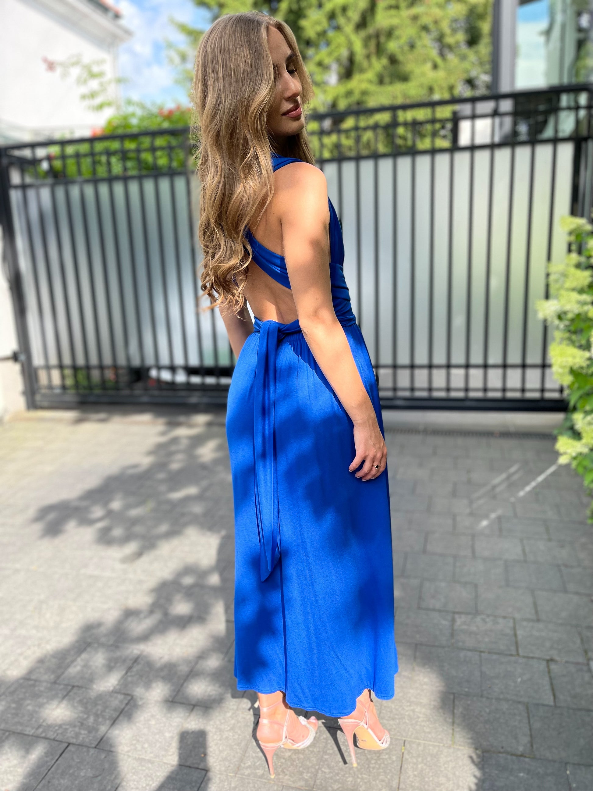 Niebieska sukienka na wesele dla druhen infinity z wiskozy wiązana na wiele sposobów id: 433