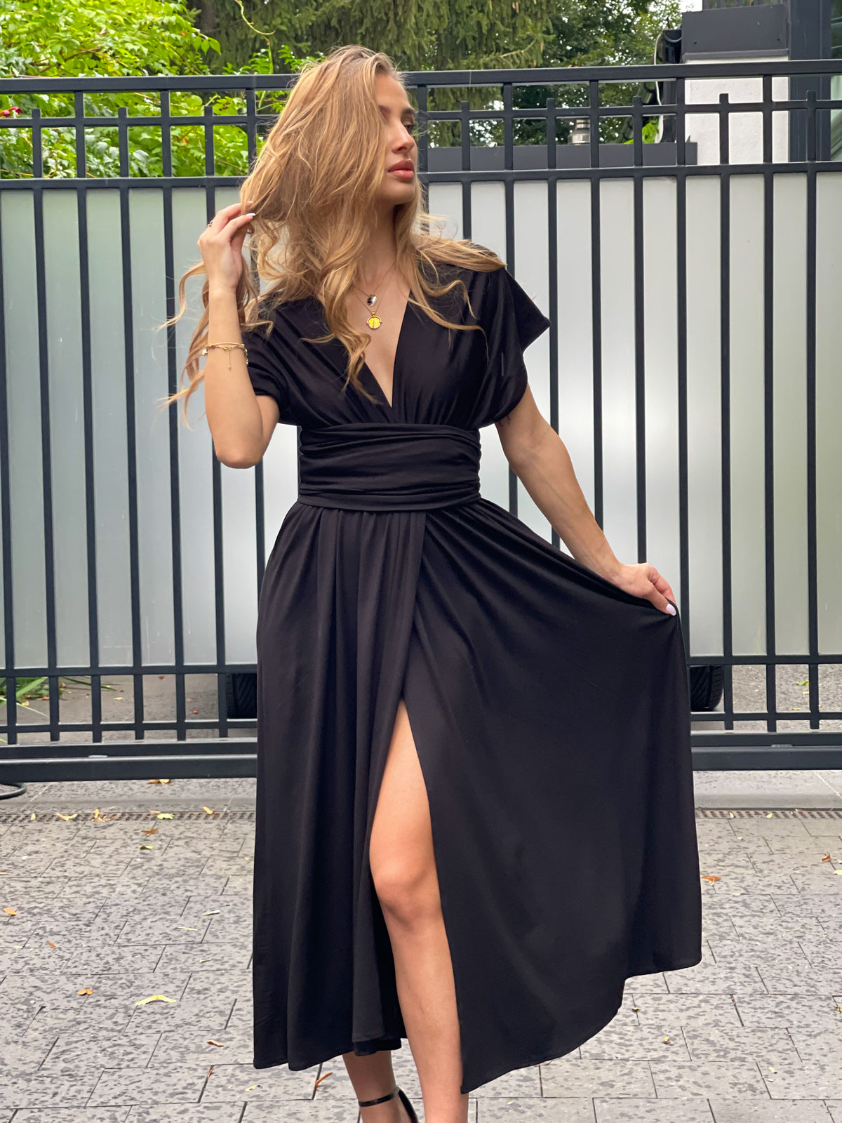 Sukienka multiway na wesele czarna z wiskozy wiązana na wiele sposobów id:1592
