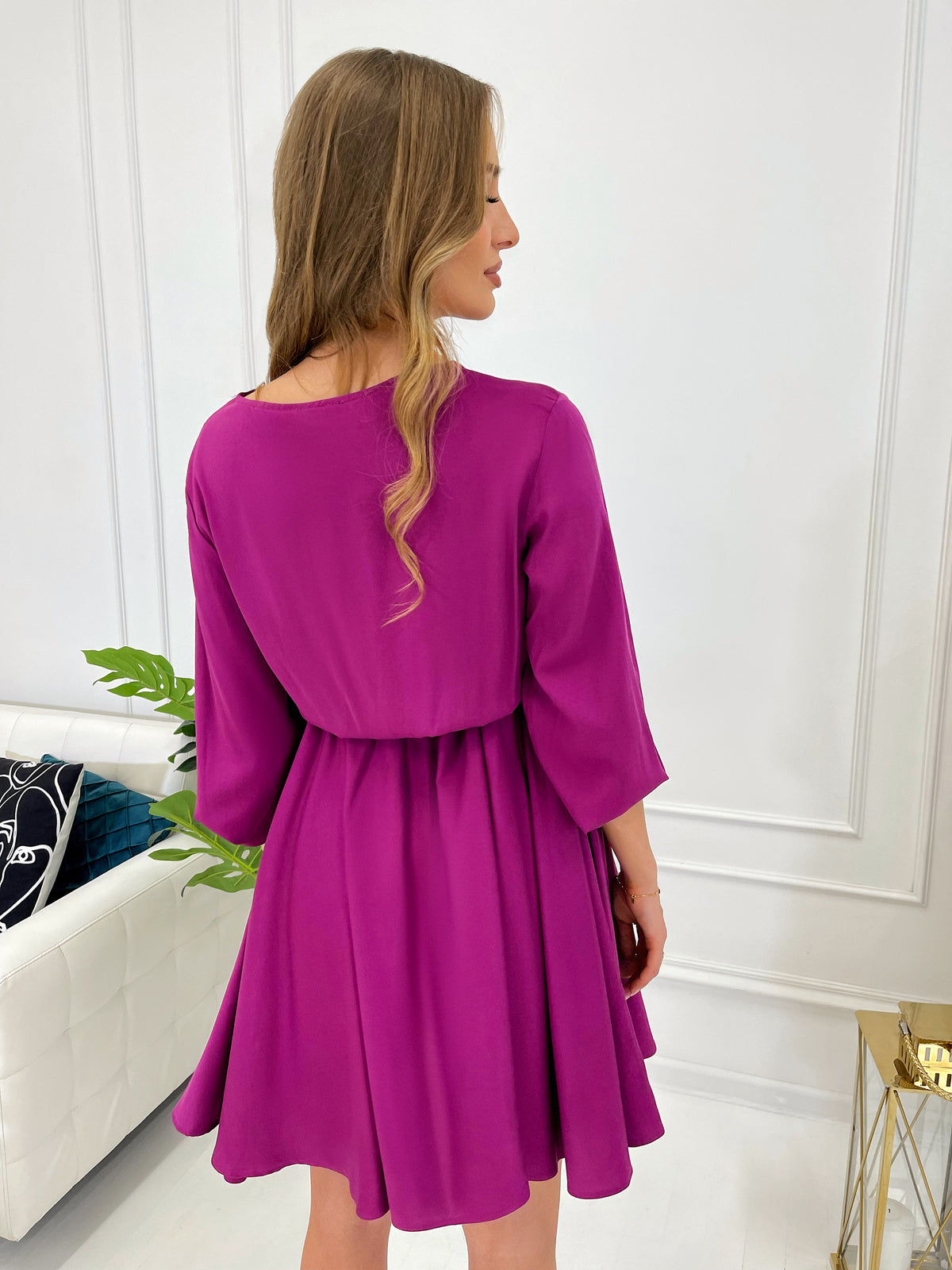 Fioletowo fuksjowa rozkloszowana sukienka z wiskozy z paskiem id:63