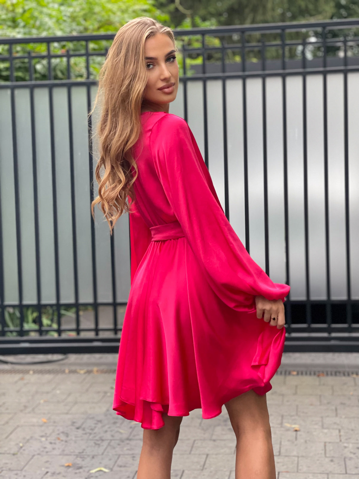 Fuksjowa sukienka na wesele - rozkloszowana pełne koło z satyny z wiskozy id:1593