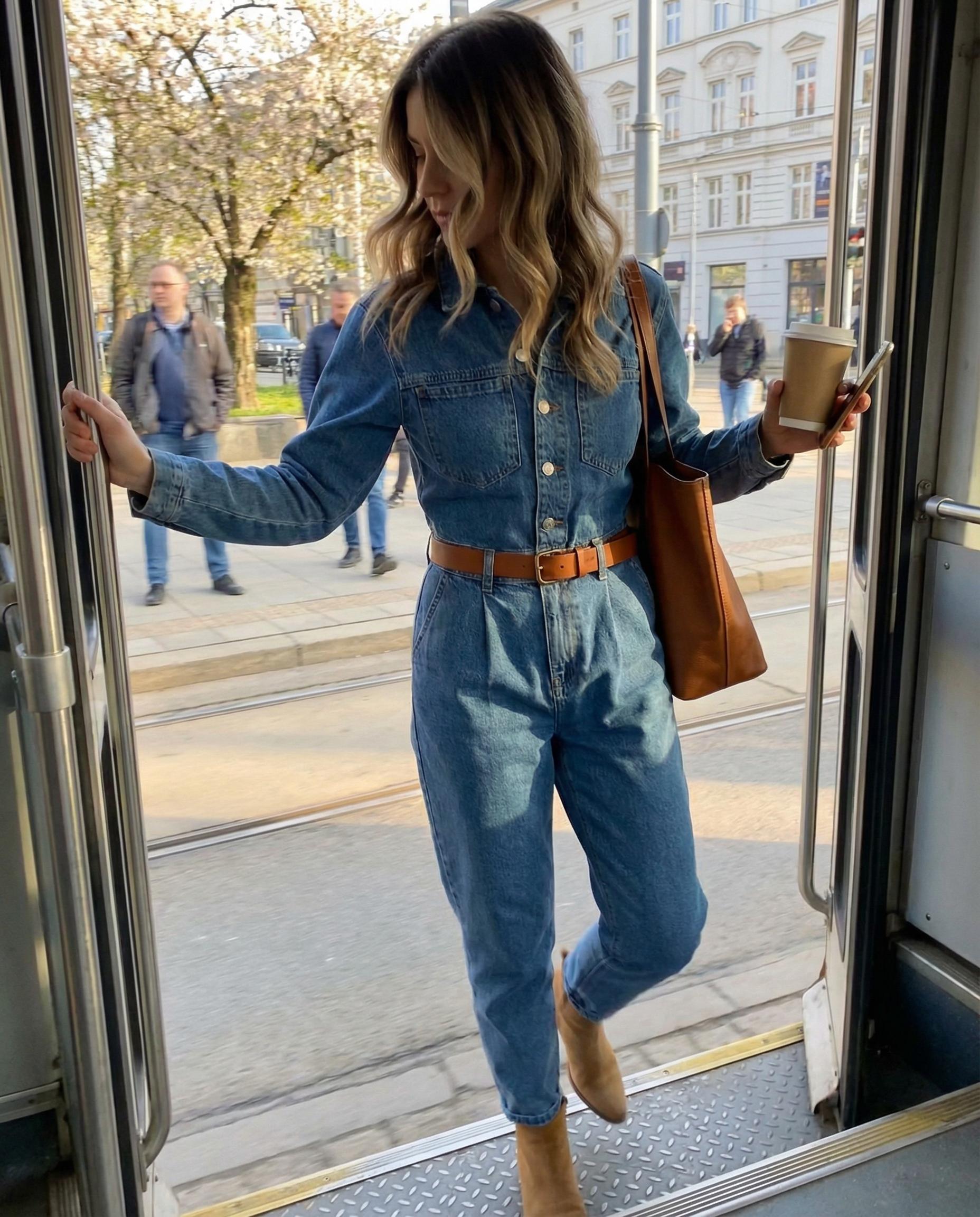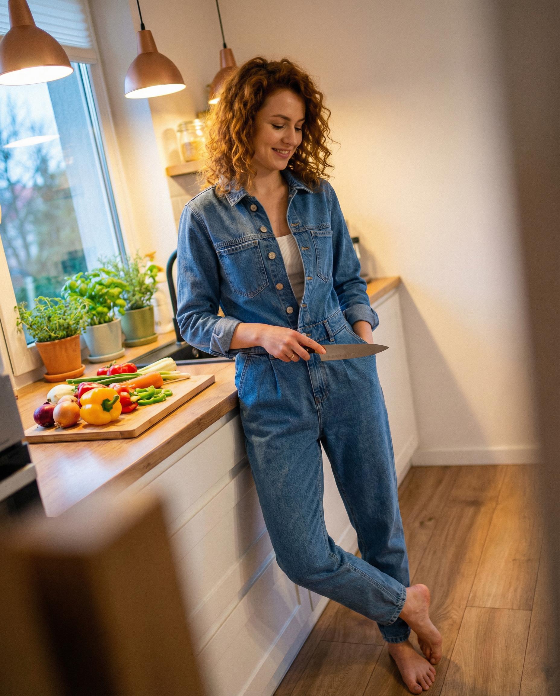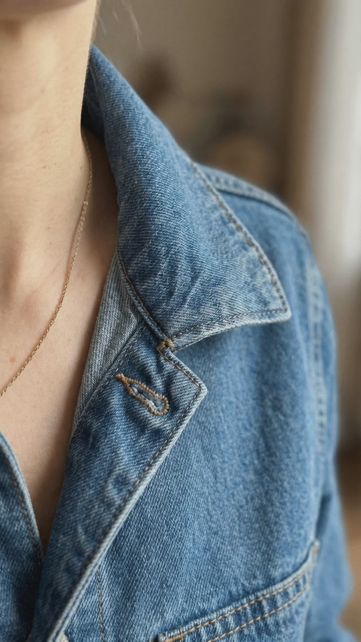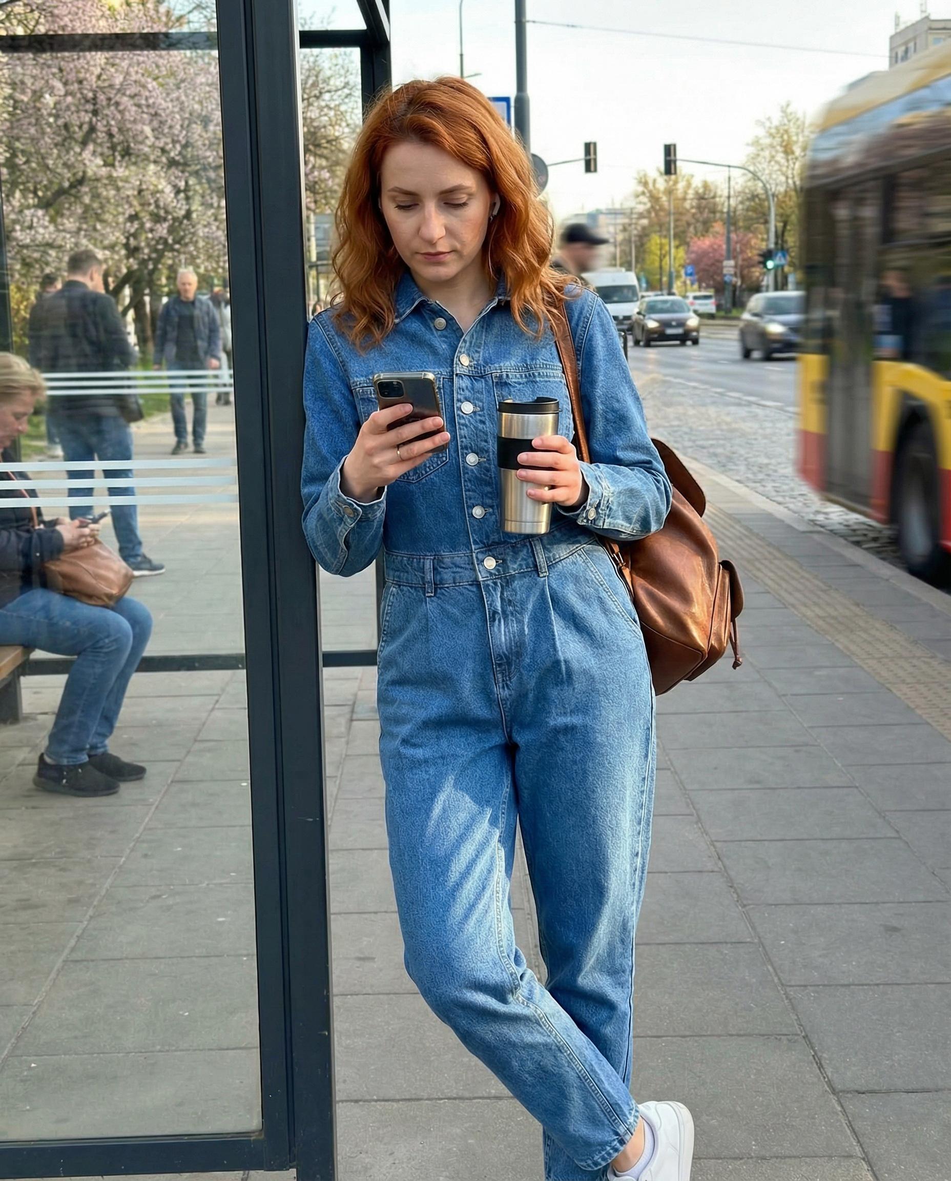 Ten stylowy kombinezon to idealna propozycja dla kobiet ceniących wyrazisty, a jednocześnie niezwykle praktyczny design. Wykonany z trwałego, wysokiej jakości jeansu, łączy w sobie surowy charakter stylu utility z kobiecym, podkreślającym figurę krojem. Klasyczny kołnierzyk oraz zapięcie na guziki dodają mu ponadczasowego szyku, a długie rękawy sprawiają, że jest to model idealny na chłodniejsze dni. Wyraźne odcięcie w talii ze szlufkami pozwala na dodatkowe podkreślenie sylwetki za pomocą ulubionego paska. Funkcjonalne kieszenie na piersiach oraz biodrach nie tylko dodają charakteru, ale są również niezwykle praktyczne w codziennym użytkowaniu. Nogawki o fasonie mom-fit delikatnie zwężają się ku dołowi, co sprawia, że kombinezon świetnie prezentuje się zarówno z botkami, jak i klasycznymi sneakersami.