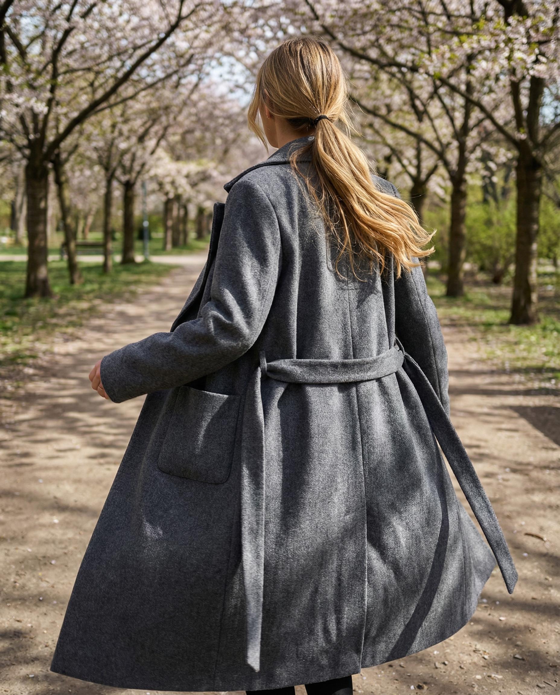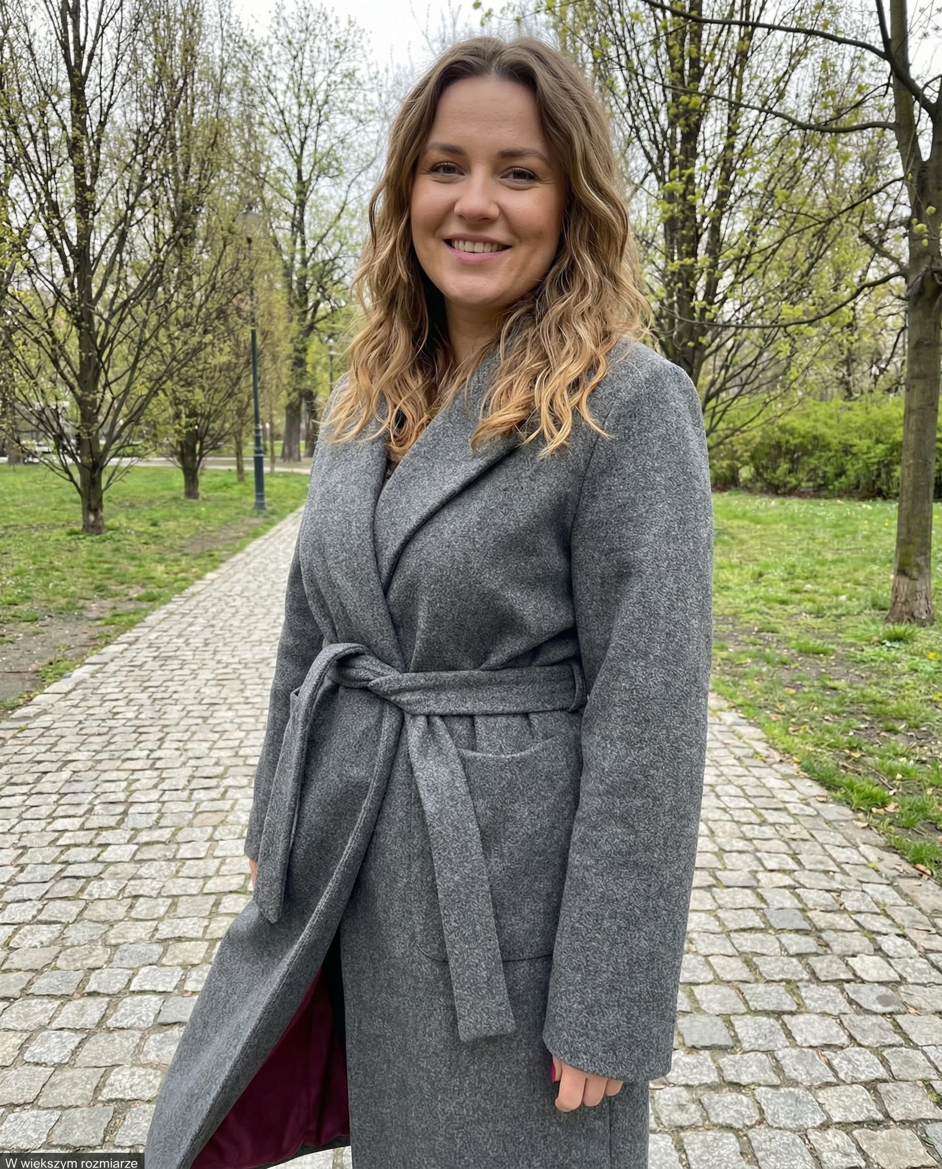 Stylowy płaszcz wykonany z miękkiego flauszu to propozycja, która łączy elegancję i komfort noszenia. Model ma klasyczny krój o długości midi, który pięknie wydłuża sylwetkę i sprawdzi się w każdej stylizacji. Wiązanie w pasie pozwala podkreślić talię i dopasować płaszcz do figury. Z tyłu znajduje się rozporek, który zapewnia swobodę ruchów i lekkość kroju. Wnętrze wykończono ciemnowiśniową podszewką, dodającą szyku i wyjątkowego charakteru. Prosty kołnierz i minimalistyczny design sprawiają, że płaszcz prezentuje się ponadczasowo. To idealny wybór na chłodniejsze dni – do pracy, na spacer czy eleganckie wyjście.