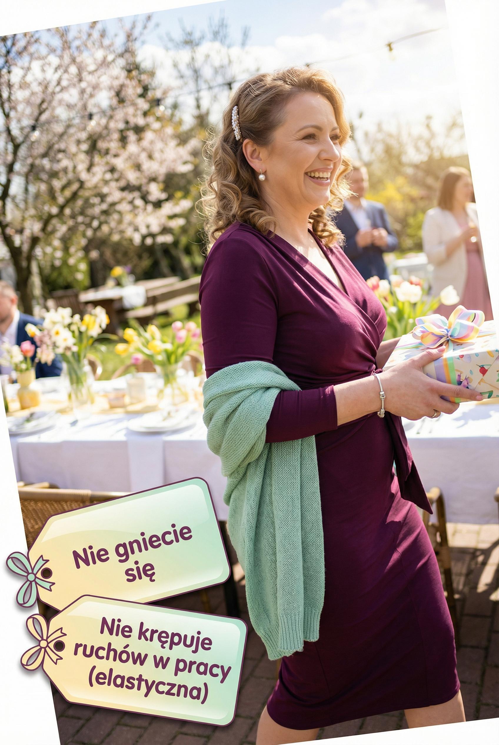 Śliwkowy odcień sprawdzi się doskonale na formalne spotkania w pracy, gdzie chcesz wyróżniać się klasą i profesjonalizmem. Ta sukienka będzie również niezastąpiona podczas uroczystego obiadu z rodziną lub wytwornego wieczoru w teatrze. Jeśli planujesz randkę przy lampce wina, jej głęboki kolor i szykowny krój stworzą wyjątkowy efekt, który podkreśli Twoją pewność siebie i styl.