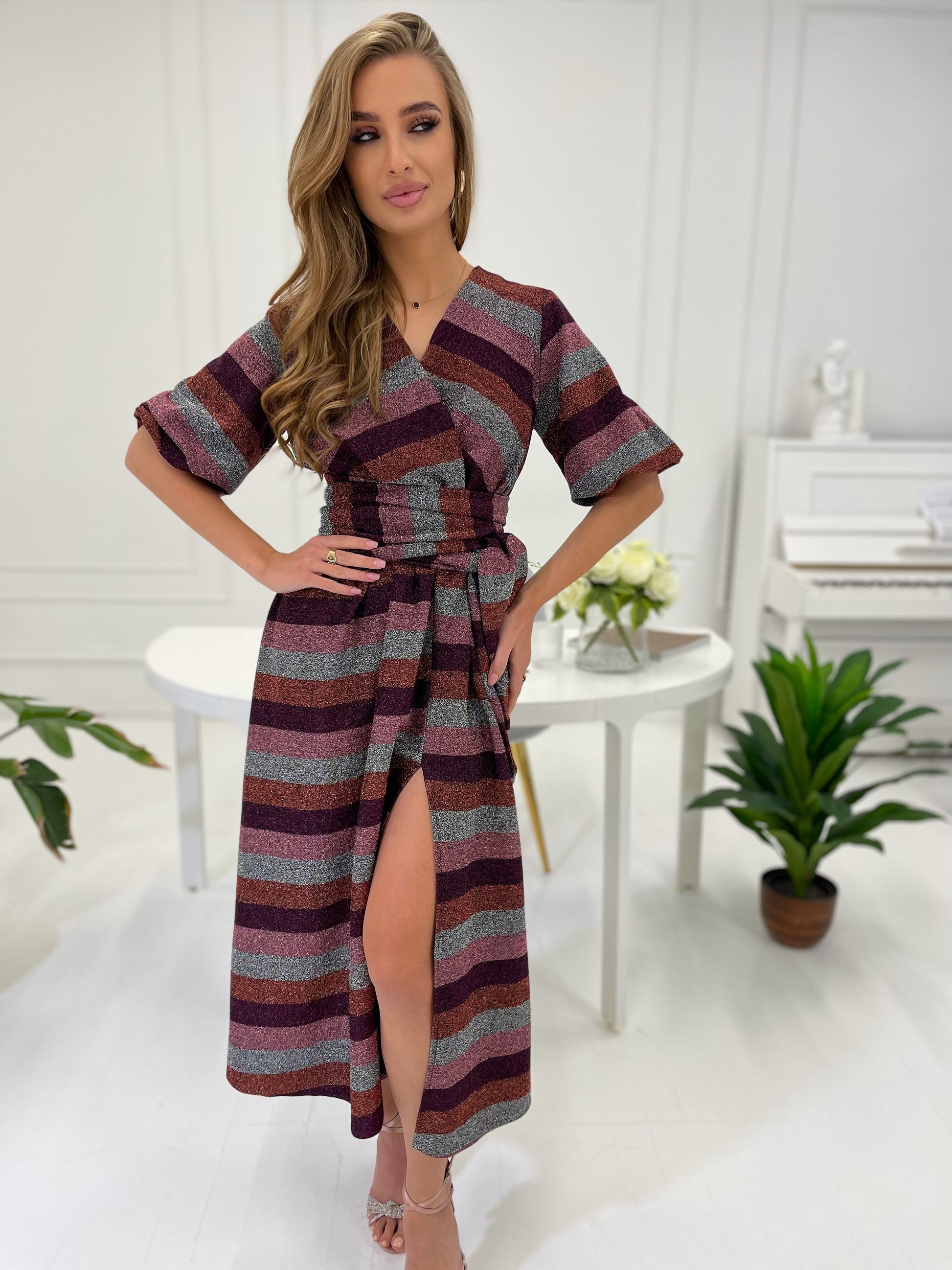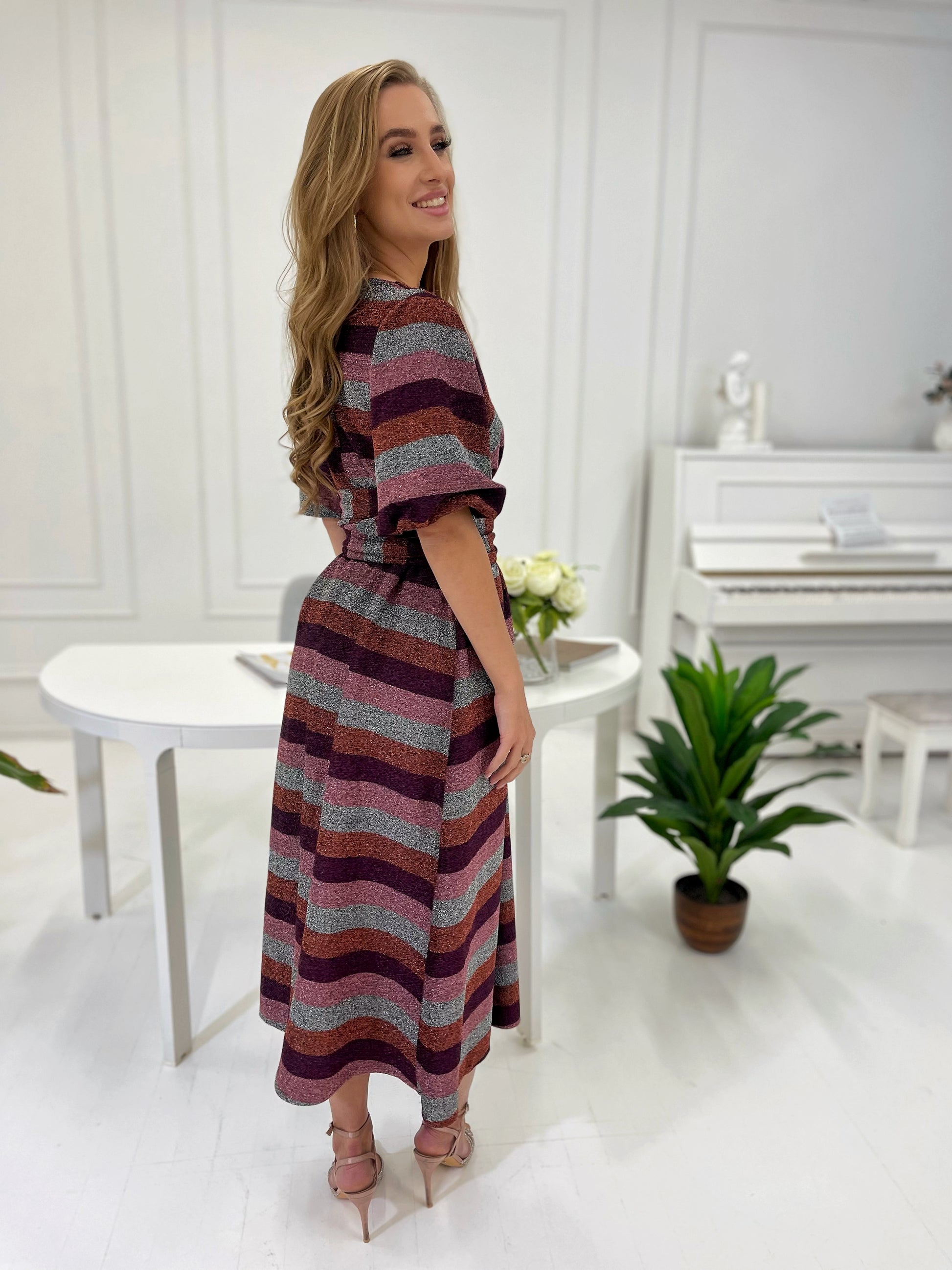 Sukienka midi z wiskozy w kolorowe pasy z błyszczącą nitką id:835