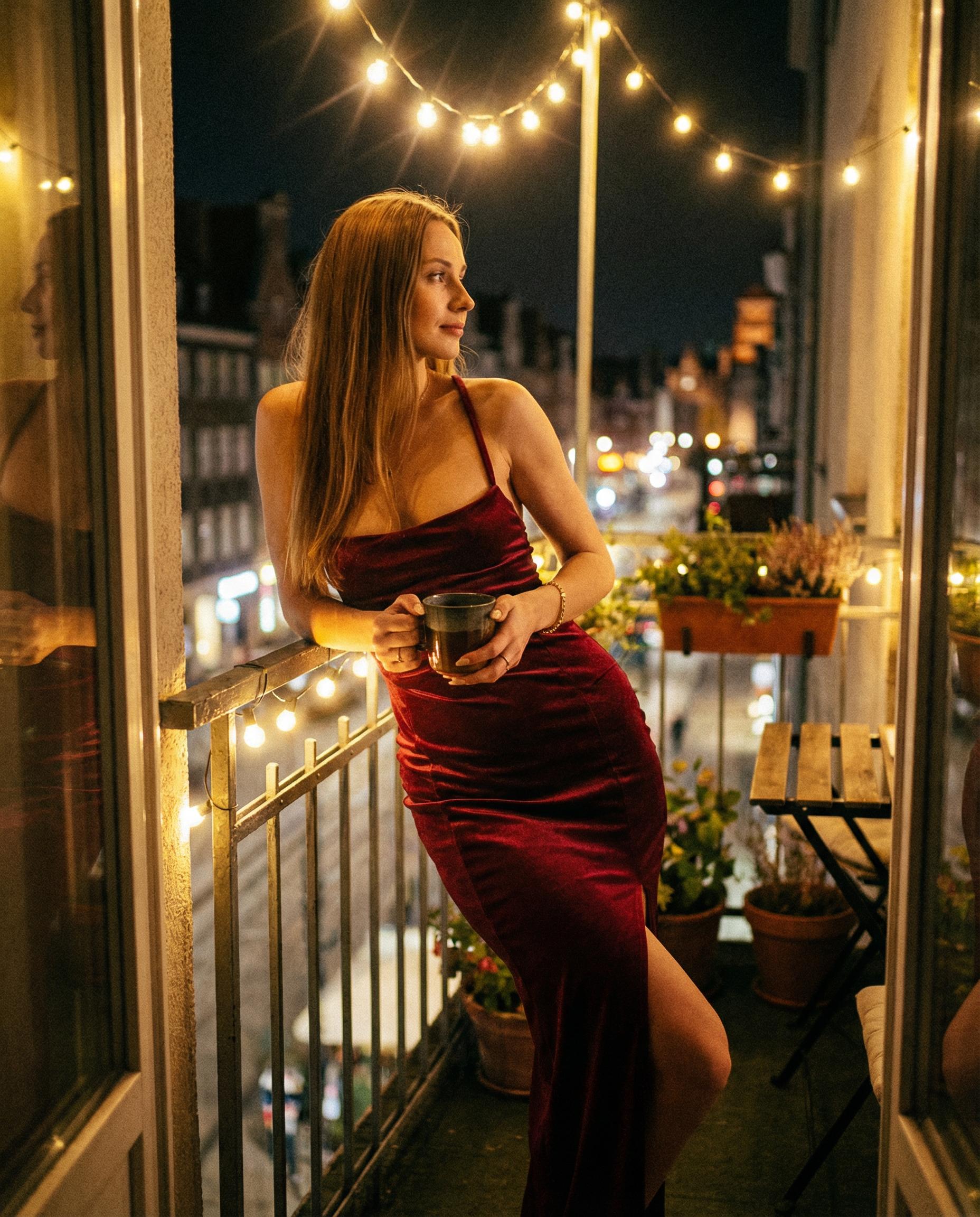 Burgundowa sukienka z elastycznego weluru to kwintesencja zmysłowej elegancji. Dopasowany fason podkreśla sylwetkę, a długość do kostek nadaje jej klasycznego wdzięku. Sukienka zachwyca kwadratowym dekoltem, który subtelnie eksponuje szyję i obojczyki, oraz cienkimi ramiączkami, które dodają delikatności. Efektowne rozcięcie na nodze nie tylko zapewnia swobodę ruchów, ale też dodaje nuty śmiałości, czyniąc ją świetnym wyborem na studniówkę – szczególnie jeśli planujesz założyć podwiązkę!